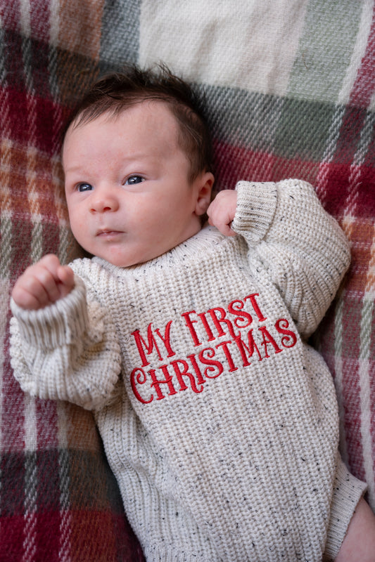 Personalised Baby Knit Romper | Oatmeal Fleck